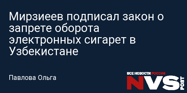 Президент Узбекистана Шавкат Мирзиеев подписал документ, который запрещает оборот электронных сигарет и жидкостей для них на территории страны, сообщает сайт Министерства юстиции в Telegram-канале. Запрет распространяется на покупку, хранение, транспортировку, передачу, изготовление и ввоз в республику таких изделий.