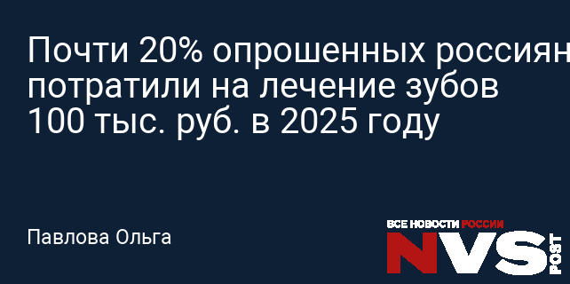 Почти 20% опрошенных россиян потратили на лечение зубов 100 тыс. руб. в 2025 году