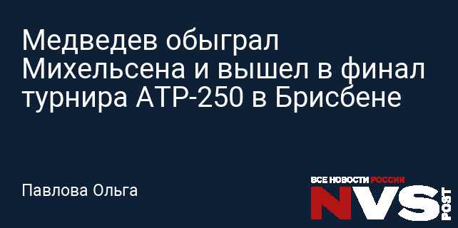 Даниил Медведев, являющийся российским теннисистом, завоевал путевку в финал соревнований ATP-250, проходящих в Брисбене, Австралия. Его соперником оказался теннисист из США Алекс Михельсен. Матч продлился 1 час и 42 минуты, и завершился уверенной победой Медведева в двух сетах с итоговым счетом 6:4, 6:2. В ходе игры россиянин выполнил девять эйсов, допустил шесть двойных ошибок и использовал четыре из восьми брейк-пойнтов. Михельсен в свою очередь подал навылет четыре раза, допустил одну двойную ошибку и реализовал один брейк-пойнт из восьми попыток.