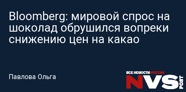 Bloomberg: мировой спрос на шоколад обрушился вопреки снижению цен на какао