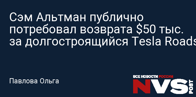 Сэм Альтман публично потребовал возврата $50 тыс. за долгостроящийся Tesla Roadster