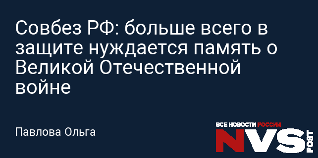 Совбез РФ: больше всего в защите нуждается память о Великой Отечественной войне