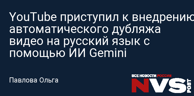 YouTube приступил к внедрению автоматического дубляжа видео на русский язык с помощью ИИ Gemini