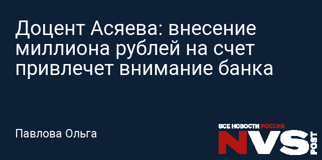 Доцент Асяева: внесение миллиона рублей на счет привлечет внимание банка