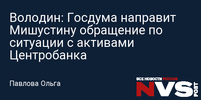 Володин: Госдума направит Мишустину обращение по ситуации с активами Центробанка