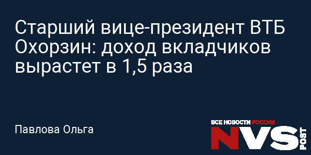 Старший вице-президент ВТБ Охорзин: доход вкладчиков вырастет в 1,5 раза