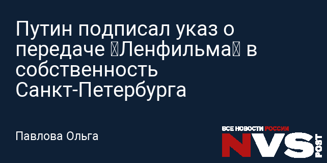 Указ, подписанный Владимиром Путиным 2 декабря, постановляет передать киностудию «Ленфильм» в собственность Санкт-Петербурга. Текст документа опубликован на портале официального опубликования правовой информации. В нем отмечено, что решение принято в интересах дальнейшего развития отечественного кинопроизводства.