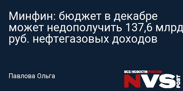 Министерство финансов сообщает, что в декабре 2025 года федеральный бюджет может не получить дополнительно 137,6 млрд рублей нефтегазовых поступлений. В расчётах учтён отложенный пересчёт сумм возмещения в рамках демпфирующей составляющей, а также поправки в законодательстве, которые вступили в силу с 1 сентября 2025 года.