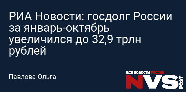 РИА Новости: госдолг России за январь-октябрь увеличился до 32,9 трлн рублей