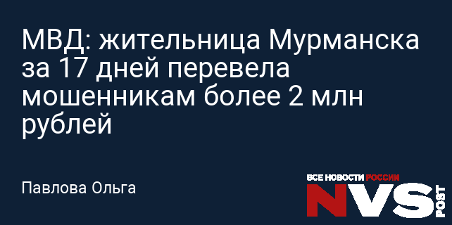 МВД: жительница Мурманска за 17 дней перевела мошенникам более 2 млн рублей