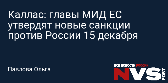Каллас: главы МИД ЕС утвердят новые санкции против России 15 декабря