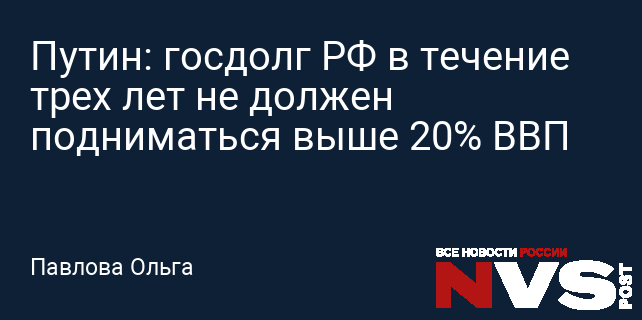 Путин: госдолг РФ в течение трех лет не должен подниматься выше 20% ВВП