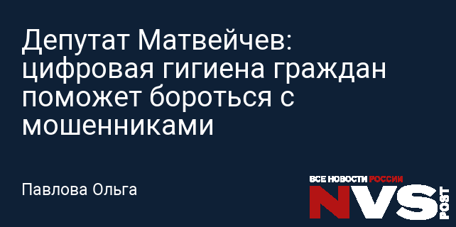 Депутат Матвейчев: цифровая гигиена граждан поможет бороться с мошенниками