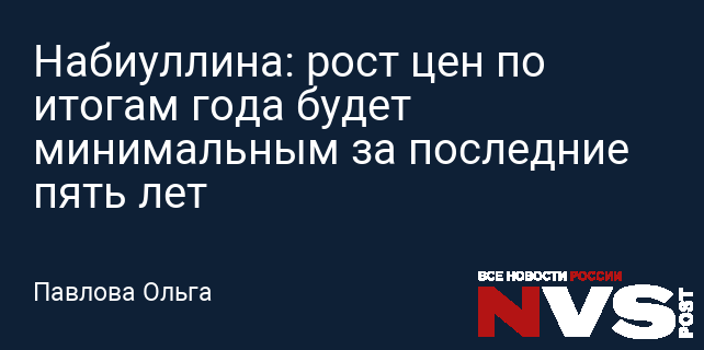 Набиуллина: рост цен по итогам года будет минимальным за последние пять лет