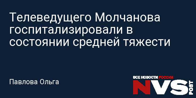 Телеведущего Молчанова госпитализировали в состоянии средней тяжести