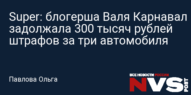 Super: блогерша Валя Карнавал задолжала 300 тысяч рублей штрафов за три автомобиля
