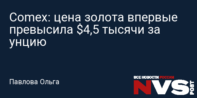 Comex: цена золота впервые превысила $4,5 тысячи за унцию