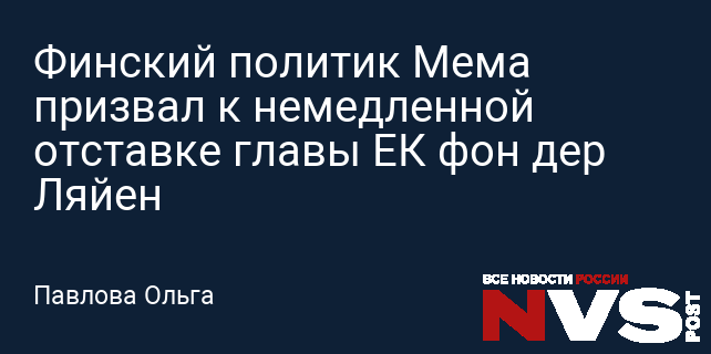 Финский политик Мема призвал к немедленной отставке главы ЕК фон дер Ляйен