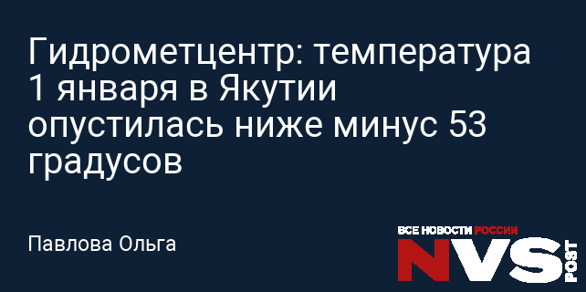 Гидрометцентр: температура 1 января в Якутии опустилась ниже минус 53 градусов