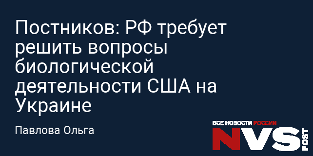 Постников: РФ требует решить вопросы биологической деятельности США на Украине