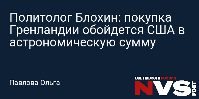 Политолог Блохин: покупка Гренландии обойдется США в астрономическую сумму