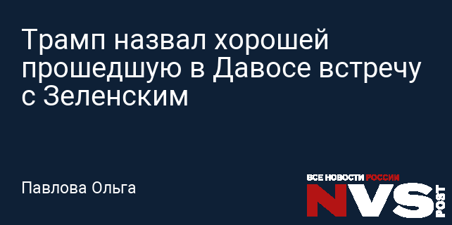 Президент США Дональд Трамп поделился мнением о своей недавней встрече с президентом Украины Владимиром Зеленским, прошедшей в Давосе. По словам Трампа, переговоры были успешными, он считает, что процесс по урегулированию конфликта в Украине продолжается. Время встречи, как сообщается, составило менее часа, при этом итогов не подводили, и пресс-конференции не было.