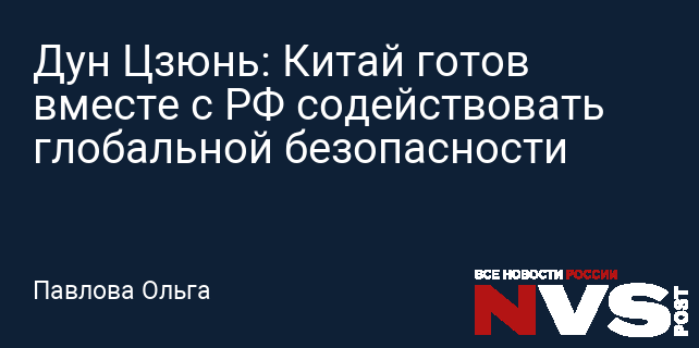 Дун Цзюнь: Китай готов вместе с РФ содействовать глобальной безопасности